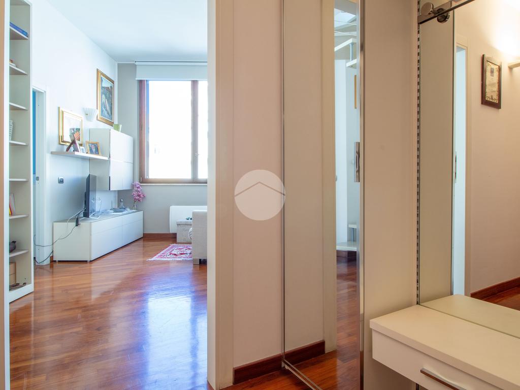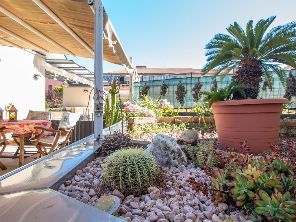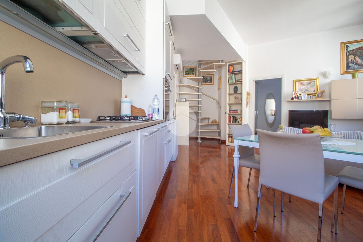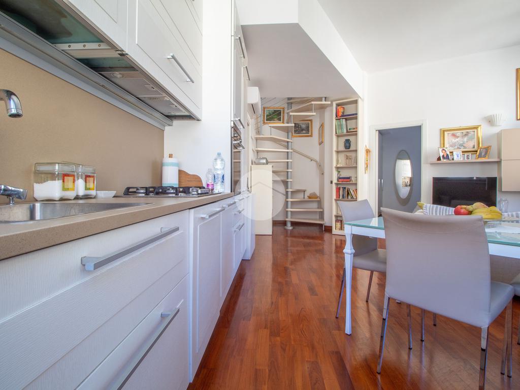 Mediante una scala a chiocciola, si accede al terrazzo con la zona lavanderia.