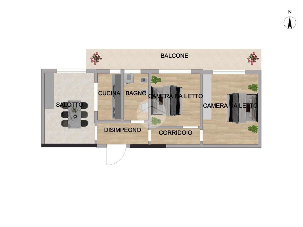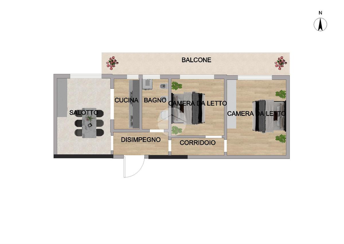 L’immobile si compone di due spaziose camere da letto, una sala accogliente con cucina a vista, un bagno funzionale e un balcone perfetto per momenti di relax all’aperto.