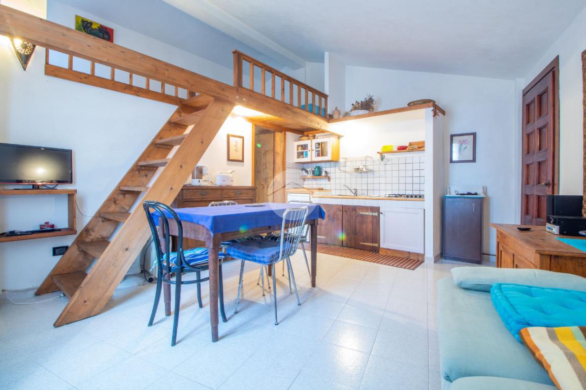 Al piano superiore si sviluppa l’abitazione principale, composta da una luminosa zona giorno con sala e angolo cottura, una camera matrimoniale, un bagno e un soppalco ideale come studio o zona relax.
