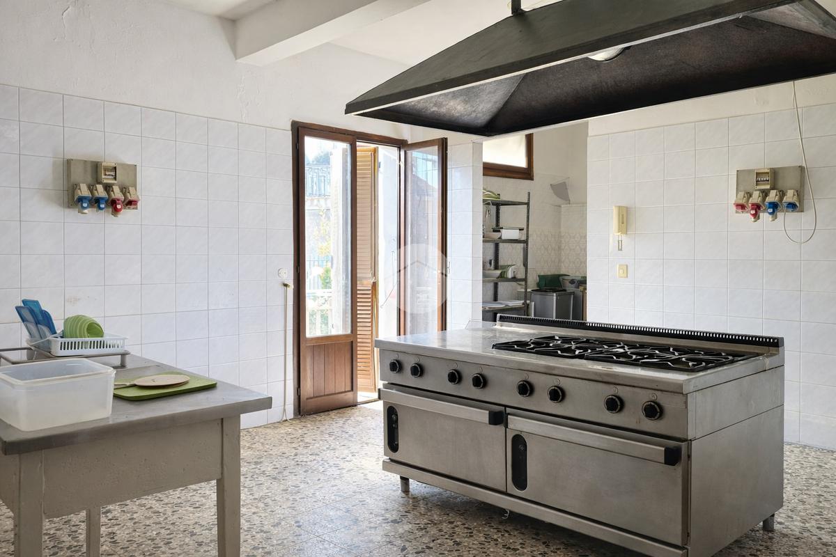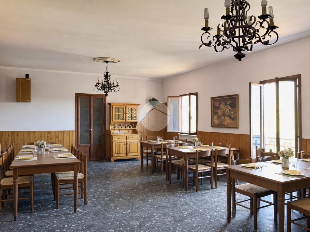 Al piano principale si trova un ampio ristorante con sala spaziosa, ideale per accogliere gruppi, eventi e clientela locale. La grande cucina professionale offre tutto lo spazio necessario per lavorare in modo funzionale e per valorizzare le tradizioni culinarie del territorio, tra cui la storica cucina bianca.