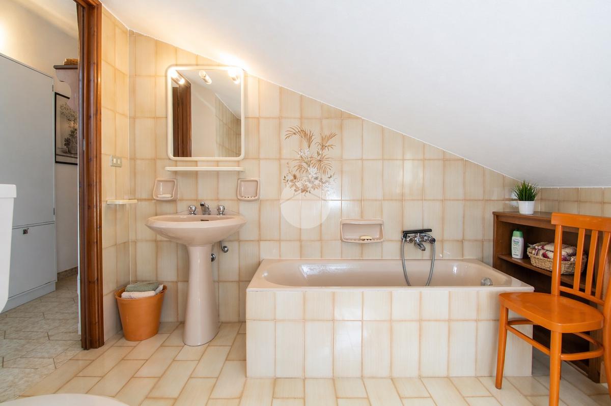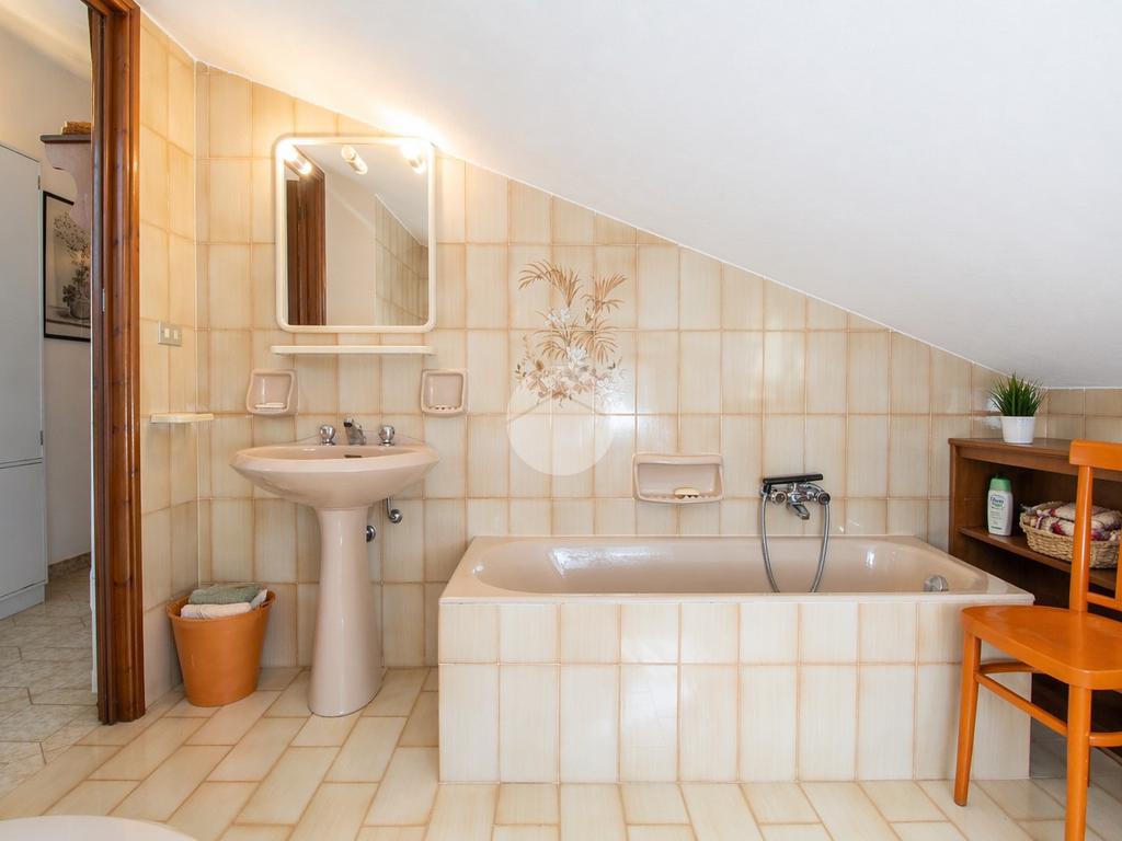 Il bagno, finestrato, è dotato di vasca. Un disimpegno separa la zona giorno dalla zona notte e offre spazio per un ulteriore armadio o area contenimento.