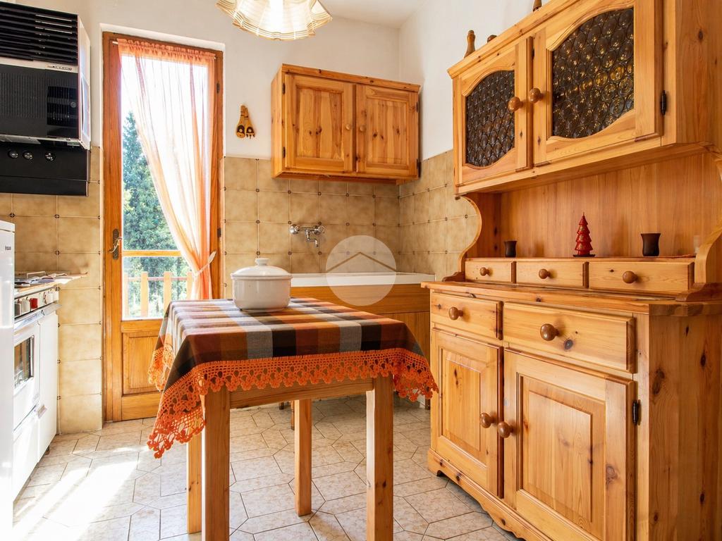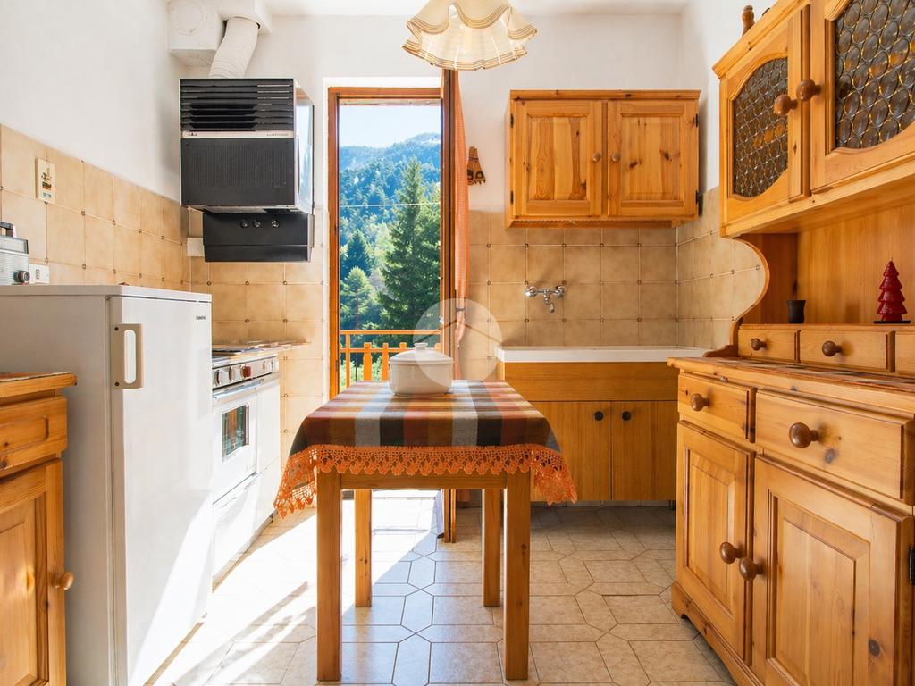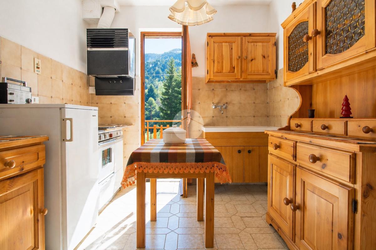 Dalla cucina si accede al balcone vivibile, dove è possibile fare colazione o pranzare all’aperto godendo della vista sul verde e del clima fresco che caratterizza il Col di Nava.